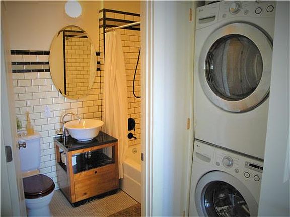 Spectacular views across Greenpoint to the Manhattan skyline from the large private roof deck of this immaculate one bedroom apartment. The living room opens out onto the roof deck. The bedroom has two exposures, a Juliet Balcony and views towards Manhattan and McCarren Park. The kitchen is new but has retro vibe with marble countertops, a farmhouse sink, custom dishwasher and a vintage style refrigerator. The same goes for the bathroom which has subway tiles and is fitted with retro style custom hardware. The apartment also has an extra -large LG washer & dryer. Located at the point where Willamsburg and Greenpoint meet, Century Vintage is minutes from the Bedford Avenue L train or the Nassau G train. It's also steps from McCarren Park and great restaurants, cafes and bars. Fitness center, common sun deck, common landscaped courtyard with seating area and dog run, video intercom, alarm system, elevator. The building has an Ace Hotel aesthetic - everything is very new but made to look old. Tax abatement for another 8 years.
