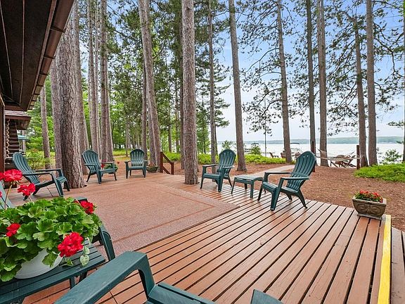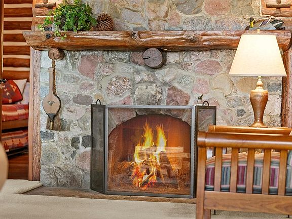 A Rare Opportunity on Higgins Lake's East Shore! Step into timeless charm and natural beauty with this historic 1929 whole log home, beautifully maintained and showcased on a 114' x 245' pine-wooded lot along the east shore of Higgins Lake. With 114 feet of sandy beach and shallow, swimmer-friendly water, this lakeside retreat offers panoramic lake views with stunning sunset experiences! The cozy yet spacious log interior is perfectly chinked and impeccably preserved, featuring an original stone wood-burning fireplace and a lake-facing wall of windows that fill the space with light and lake views. The home sleeps up to 10 guests comfortably, with 3 bedrooms, a den with a hide-a-bed, and a loft for extra sleeping space. You will enjoy 1/7 ownership interest in the historical Flag Point Club with amenities including tennis and pickle ball court, a carriage house with storage, and a guest house- that is available for reservation when you need space for additional company. Enjoy expansive outdoors living with a large lakeside deck, hot tub, and multiple seating areas ideal for entertaining or unwinding with a book. Whether you're looking for a vacation home, family retreat, or rare piece of Michigan history, this lakeside log home delivers character, comfort, and unforgettable views of the most beautiful lake in Michigan. Welcome to Pine Cone Cabin!