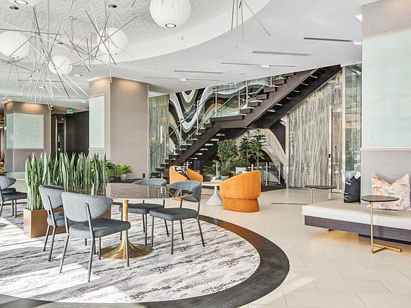 - Exterior features: , 1st - 6th Floors, 9-foot ceilings, Alcove, Availability 24 Hours, Balcony, Barbecue, Barndoor, Business Center, Car charging station, Club room with game selections, Concierge, Conference Room, Dry cleaning service, European-style cabinetry, Floor to Ceiling Windows, Floor-to-ceiling windows (select apartments), High-speed Internet Ready, Media Room, Mobility accessible, On-Site Maintenance, On-Site Management, On-site ATM, On-site retail, Package Receiving, Pet Washing Station, Short Term Lease, Sundeck, TV Lounge, Urban plaza featuring a central fountain