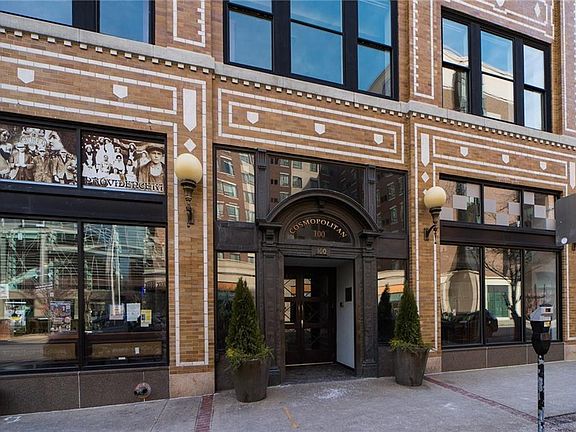 THE COSMOPOLITAN (Palmer Block building, c1915) a boutique NYC SOHO style condo development located in the heart of the revitalized Arts & Theater District of Downtown PVD. This stunning and meticulously maintained (3Bed/2Bath) condo has a offers an amazing bright open layout highlighted by hardwoods + walls of oversize windows throughout provide spectacular panoramic views of the city from every room. Perfect for entertaining any size gatherings, a cooks kitchen is connected to the main living space(s) and equipped with top of the line SS appliances, floor to ceiling cabinetry, oversize kitchen island with tons of counter space for food prep. Tucked away from the main living space(s), the (2) Guest Bedrooms are generous in size and could easy double as a home office, gym or studio space along with a full Bathroom and laundry area. The expansive Primary Bedroom suite features an oversize walk-in closet and plush spa style Bathroom with soaking tub and walk-in glass shower. The building is professionally managed w/ gated outdoor parking, elevator and private entry. (A+) walk score, location will have you in the middle of it all, steps away from local restaurants, gourmet food markets, and shopping. Walking distance to the Train Station, College Hill and Universities, stroll along the Providence River waterfront parks, Pedestrian Bridge and access to the East Bay bike path. Hospitals, highway access and TF Green Airport are only minutes away. Very special and rare offering.