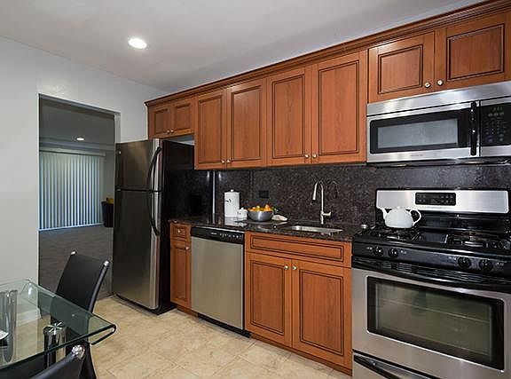 Our one and two bedroom apartment homes with private entry. Featuring Tuscany cabinets, granite countertops and Stainless Steel Appliances. Bath with raised-panel cabinetry. Included: plush carpeting, air-conditioners, 2" faux woodgrain window treatments and crown and base molding. Selected units have terrace. Heat, hot water and cooking gas included in the rent.