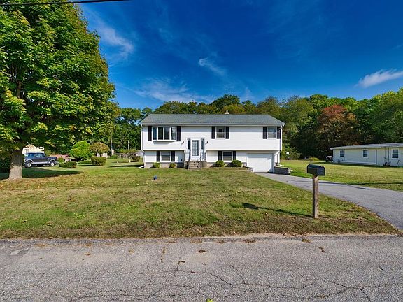 Welcome to this well-maintained raised ranch set on a quiet street in South Tiverton. Offering three bedrooms and one and a half baths, this home blends comfort with important system updates. The main level features hardwood floors hidden beneath the carpet, a bow window that fills the living room with light, and a sunroom addition for year-round enjoyment. The kitchen showcases its original maple cabinetry, while the baths include a mix of vintage charm and tasteful renovation. Recent improvements include a new roof (2022), sump pump (2022), hot water tank (2023), well pump (2019), and an oil boiler replacement. While the interior offers opportunity for cosmetic updates, the home has been well cared for and provides a solid foundation. The lower level provides garage access, laundry, storage, and finishing potential. Outdoors, nearly a half-acre lot offers room to garden, play, or expand. Home is currently serviced by a cesspool; buyer will be responsible for septic replacement. Property being sold AS-IS.