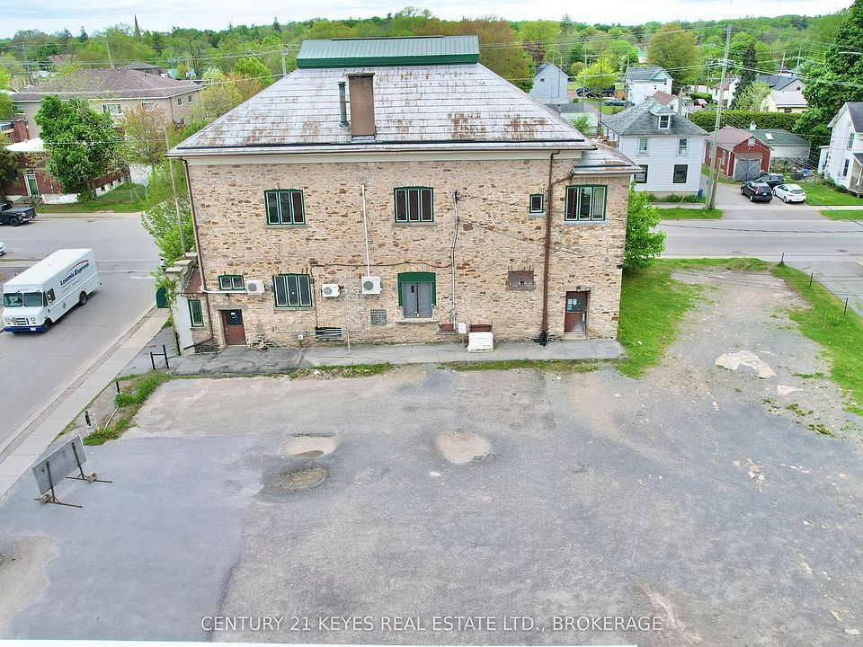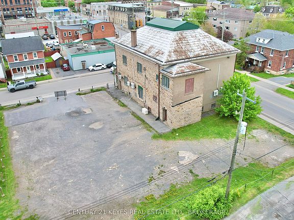 Attention Investors! Large property with prime location and opportunity for land development in the bustling town of Gananoque with over 6500 sq ft of interior space. The large 125 x 125 ft lot has ample room for parking (up to 25 cars) which can be used to generate additional income. There is a 2025 Phase One, RSC, and a 2024 Survey completed. This building has a special zoning where it can be either commercial or residential and has access to 3 different streets/roads. The existing building has 14 foot ceilings and could accommodate 8+ units inside (2-3 bedrooms) and has a Generac generator as a power backup. This fantastic location allows you to hear the bells of the historic Gananoque Clock Tower and is walking distance to work, shops, restaurants, and many other of Gananoques amenities. Do not miss this incredible opportunity!