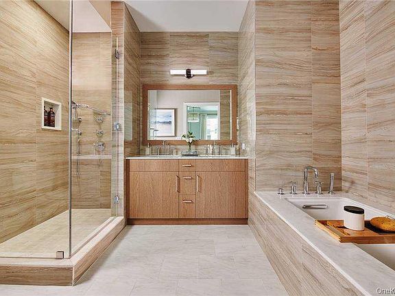 This bright two-bedroom, two-bathroom home features 10' ceilings, and floor to ceiling windows. This layout features an open kitchen with views of the pool and marina. The gourmet kitchen complete with custom paneled GE appliances has white Brazilian quartzite countertops and a kitchen island with a Kohler undermount sink, Insinkerator garbage disposal and instant filtered hot and cold-water faucet. A GE Monogram 6 burner gas range is equipped with dual infrared cooking and is fully vented. The white Siena flat paneled cabinets and a Sharp easy touch drawer style microwave complete the space. The spacious primary bedroom features a large closet and an en-suite 4-fixture primary bathroom with white marble floors, countertops and full height porcelain tiled walls, a glass enclosed shower and a double vanity with all Kohler fixtures. The home includes a front loading washer and dryer. The Beacon at Garvies Point is perfectly situated in North Shore's most dynamic new community, set in a 56-acre picturesque waterfront and adjacent to a 62-acre serene nature preserve, within 1 hour of Manhattan. Exclusive residential services & amenities feature a 24-hour concierge, outdoor kitchens, outdoor pool, state-of-the-art fitness center, yoga studio, library, lounge, card room, game room, dining/party room with prep kitchen and a 32 person screening room