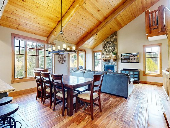 Experience refined mountain living in this fully furnished modern rustic log home, built in 2015 with luxury finishes. Designed for comfort and elegance, it features 4 bedrooms, 3.5 baths, two expansive living rooms, and radiant floor heating with individual controls. The chef's kitchen showcases granite counters, stainless appliances, and vaulted ceilings with exposed beams framing a grand stone fireplace. Outdoors, a covered deck with an endless gas grill invites you to enjoy sunsets, mountain views, and abundant wildlife. The walkout level opens to a private patio with hot tub, creating a secluded spa-like retreat. An oversized heated 2-car garage, roof de-icing, and full snow removal ensure ease of ownership.In high demand, this Superhost property delivers proven rental success.
