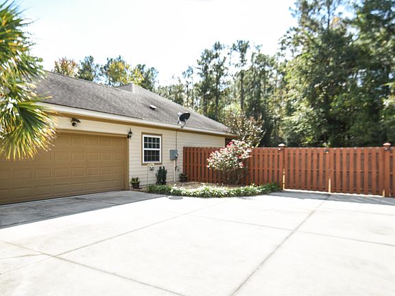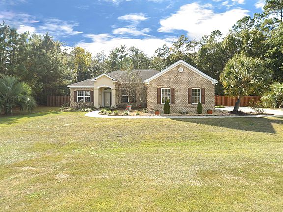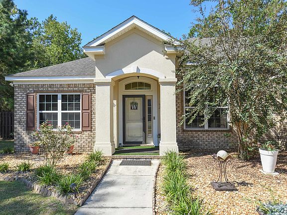 One of the most desirable properties in the subdivision! Palm trees and beautiful landscaping welcomes you home! A protected conservation easement surrounds the home, ensuring your enjoyment of the natural wooded view and abundant wildlife! The incredible backyard feels like an oasis with beautiful landscaping, a 15x7 screened porch, 15x7 covered patio, 10x16 storage building, privacy fencing, and a custom fire pit with seating for 8! Inside you'll find many upgrades including tray ceilings, granite countertops, real hardwood flooring, and 6' base/crown moldings. The open kitchen features a large peninsula with barstools, and a bonus seating area. The split bedroom plan highlights a private 2BR/1BA on one side, and and a master retreat on the other -complete with French doors to the screened porch, a jetted tub, walk in shower, and spacious closet! This home offers quality and style in a rare setting you won’t want to miss!