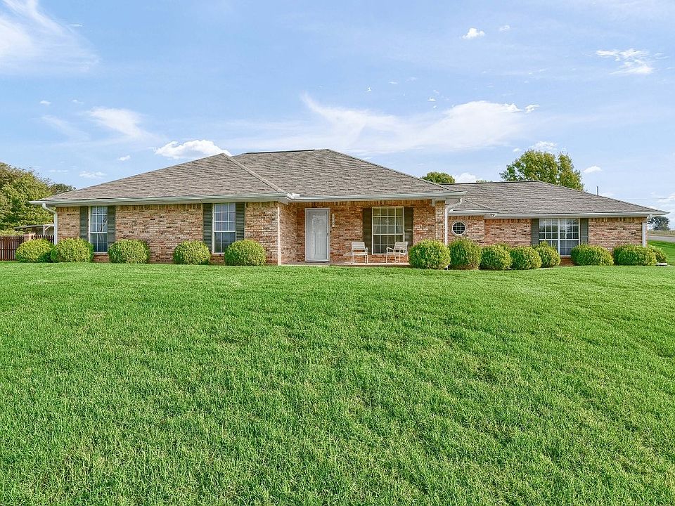 Good bones in great neighborhood on 1 acre in much sought after Golden Acres Subdivision. This well built home is ready for your updates and priced accordingly. An entry hall leads into a living area with fireplace, and a formal dining room that could also be used as am office. The large eat in kitchen has a breakfast bar, custom cabinets providing amble storage, and a breakfast area surrounded by windows for lots of natural light. Off the kitchen, you will find a half bath and a utility room. The spacious primary bedroom has an en suite with garden tub, dual sinks, and a separate shower. Two additional bedrooms share a full bath. The fenced backyard has a covered patio. The garage has a large storage area. Lots of potential with this home.
