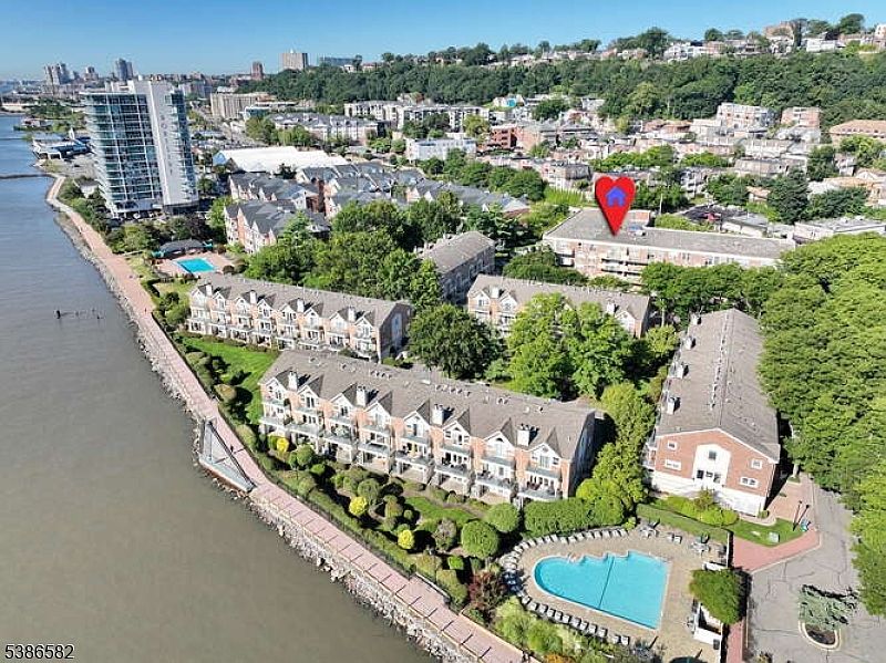 Experience luxurious riverfront living in one of Edgewater's most sought-after communities. This beautifully maintained 1-bedroom, 1.5-bath condo offers 1,010 square feet of modern comfort, highlighted by stunning views of the Manhattan skyline and Hudson River. The spacious primary suite features two generous closets and a spa-inspired bathroom with a soaking tub and walk-in shower, while a stylish powder room adds convenience for guests. The updated kitchen boasts granite countertops and a breakfast bar, seamlessly connecting to a dedicated dining area and a sunlit living space. Step out onto your private balcony to enjoy peaceful river views, ideal for morning coffee or relaxing evenings. Additional features include in-unit laundry, elevator access, and 24-hour gated security. Residents enjoy exclusive access to a fitness center with sauna, a riverfront outdoor pool with grilling area, and unbeatable commuter convenience with an NYC bus stop right outside the complex and the ferry just a short walk away. This home offers the perfect blend of elegance, comfort, and location ideal for enjoying the best of New Jersey's Gold Coast.