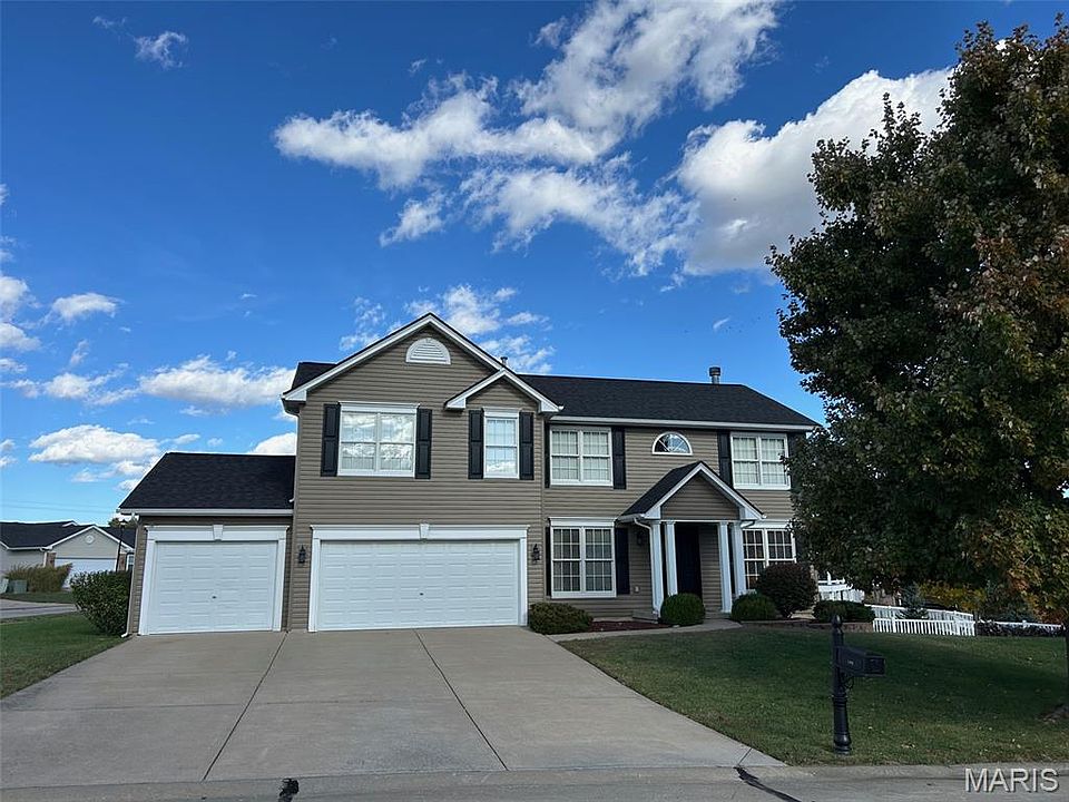 Coming Soon to O'Fallon! Spacious 2-story home with over 2,500 sq ft of living space sitting on a large corner lot of a cul-de-sac! This attractive home has had a huge exterior make-over in the last year with a BRAND NEW architectural shingle roof, all new vinyl siding, new gutters/downspouts, 9 new windows & more! PLUS, a BRAND NEW HVAC system was just installed 3 months ago! Walk inside and find newer laminate flooring throughout main areas (2022), a formal dining room and a flex room that could be used as an office or living room, and a large cozy family room with wood-burning fireplace & wall of windows! Cooking in the adjacent eat-in kitchen will be a delight with the newer quartz countertops & subway tile backsplash (2023)! Right off your kitchen step outside to relax on the newer, 15'x24' concrete patio (2021) with privacy fence partition. Head up to the 2nd floor of this home to find 4 bedrooms, 2 full baths, and a LARGE loft space which is perfect for a playroom, teenage hangout space, an office, or TV room. Plus a full basement is waiting for your finishing touches! Notable feature - Double hung, insulated, tilt-in, white wood Anderson windows throughout home! Other updates include a newer hot water heater (2021)! All of this in a family friendly subdivision with amenities galore...community pool, playground, pavilions, walking trails, basketball court, frisbee golf & more! Top rated schools & convenient location to Hwys 70 & 79!