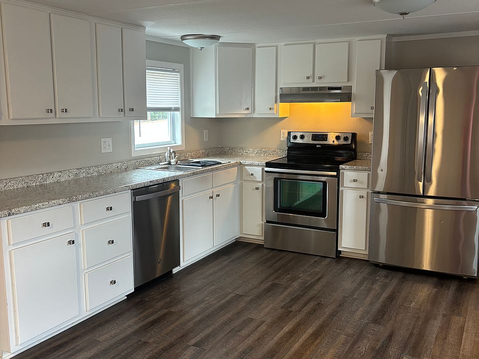Very safe neighborhood. Completely remodeled. Two bedroom/2 bath. New cabinets and countertops. New Tub Shower Units. Fresh paint. Vinyl plank flooring throughout. Large lot in the country. Stainless steel appliances. Vinyl insulated tilt windows(not Mobile Home windows). Steel doors with Deadbolts. (not Mobile Home doors).