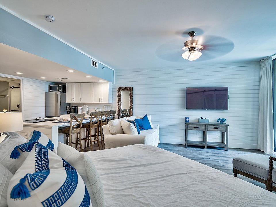 ONE of a kind, completely remodeled condo at East Pass Towers at the tip of Norriego Point on the Destin Harbor. Appointed with light coastal accents and colors this property is sure to impress and offer a functional setting from the casual second home owner to the savvy vacation rental investor. East Pass Tower 1 allows for short term rentals and offers a unique setting overlooking the Destin Pass from the oversized pool deck offering a large pool, hot tub and beach access area. The condo has a full bathroom with standing shower, full kitchen, king bed, sitting area and full size laundry. A large covered balcony offers plenty of room for relaxing and dining. This is a perfect beach getaway and you can take the water taxi from the back of the complex to any location on the Harbor