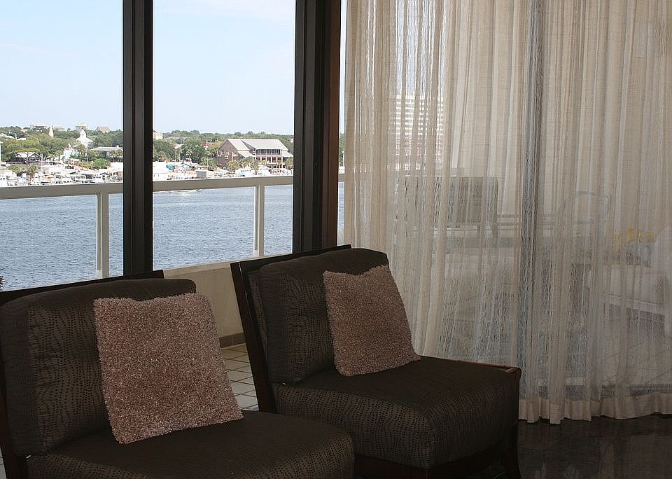 As you walk into this lavish 4 bedroom/2 bath penthouse you will experience views like no other. Surrounded by the emerald waters of the Destin East Pass, the Destin Harbor and the gorgeous white sands of Norriego Point. This penthouse offers a very open floor plan, floor to ceiling windows in every room, a beautiful gourmet kitchen with granite counters, stainless appliances, wine cooler, and breakfast bar. The living area sports great views of the harbor, a warm fireplace and marble flooring. The condo comes completely furnished and rental ready for your convenience. Other great features include a waterfront master bedroom, split bedroom floor plan, dining area, wrap around balcony, a separate living area, and electric controlled shutters. Also included is a parking space & storage unit.