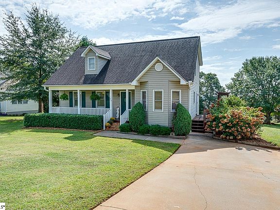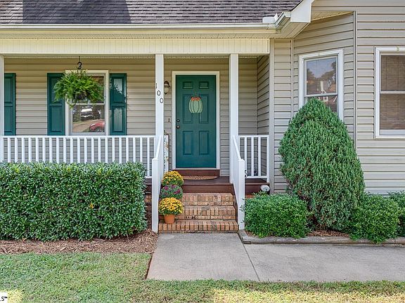 BACK ON THE MARKET DUE TO NO FAULT OF THE SELLER. INSPECTIONS AND REPAIRS DONE. BUYER FINANCING FELL THROUGH. Mountain View. HUGE yard. Flexible Floor Plan. This one has it all! 100 Hallmark Lane is a 3 bed/2 bath home sitting on just over a half-acre lot. Spend some time chatting with your neighbors on the large front porch before heading inside to the spacious great room with gas log fireplace. The eat in kitchen offers plenty of space to enjoy meals with family and friends and comes with a full appliance package including a new double oven! Off the kitchen is a flex space that can be used as a dining room, home office, small den or even a first-floor playroom! Tucked away off the living room is the first of TWO primary bedroom options. This first floor bedroom boasts two closets and easy access to the full bath and could serve not only as a primary bedroom but also as a guest room. Upstairs is a secondary bedroom as well as the second primary bedroom option. This spacious bedroom offers space for a sitting area or reading nook as well as a large walk-in closet. There is another full bath on this level as well. The outside living space will quickly become your favorite place to be! There are gorgeous seasonal mountain views, roses and hydrangeas PLUS a pear tree, blackberry, and blueberry bushes! The three-tiered deck has enough room to swing, grill, eat, and relax and the yard is plenty big for a pool, playset, and gardens. There is a 10x20 outbuilding with electricity and a water hookup for your gardens, and right behind the building is a built-in smoker! This sweet neighborhood is a true community where you will find it so easy to walk your dog or go for a run. Located between Greenville and Clemson, and just a short drive to downtown Easley, shopping, dining and interstate access, this home offers you the tranquil neighborhood you want and all the conveniences you need! Sold AS IS