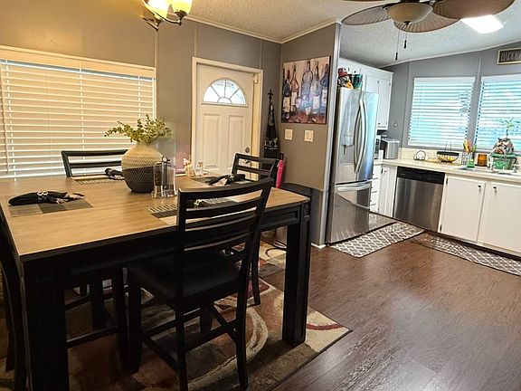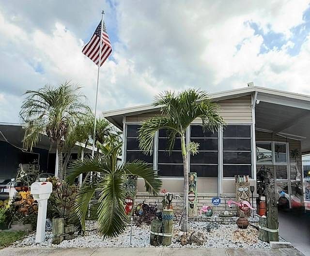 Pamper yourself with resort like living in sought-after Island In The Sun active 55+ community year-round or as a vacation home. This beautiful home is high and dry untouched by last year's hurricanes, decorated and ready to move in with lots of upgrades. 2 bedrms, 2 full baths, built in China cabinet in dining room facing beautiful kitchen with stainless steel appliances. Nice sized living room great for entertaining leads into a screened lanai perfect for enjoying balmy breezes. Newer A/C, most windows thermo double paned, doors are six panel, water softener, showers, newer hot water heater elements, ADT alarm and ring doorbell systems. Gorgeous, solid floors throughout, master bedroom, walk-in closet, extra shed, and oversized carport with a patio on a quiet, no traffic street. Convenience is second to none with nearby restaurants, theaters, shopping, and easy access to several beaches. Amenities abound with pool, hot tub, fitness room, pickle ball, billiards room, shuffleboard, bocce ball, yoga, clubhouse, and too many activities to mention all for the low lot rent of $1063 a month, which includes lawn care. With this being so much cheaper than renting why not enjoy the Florida lifestyle with your very own home! All listing information is deemed reliable but not guaranteed. Buyers should independently verify all information, including measurements, condition, and community details. Integrity Mobile Home Sales does not warrant the accuracy of this information. Measurements are approximate.