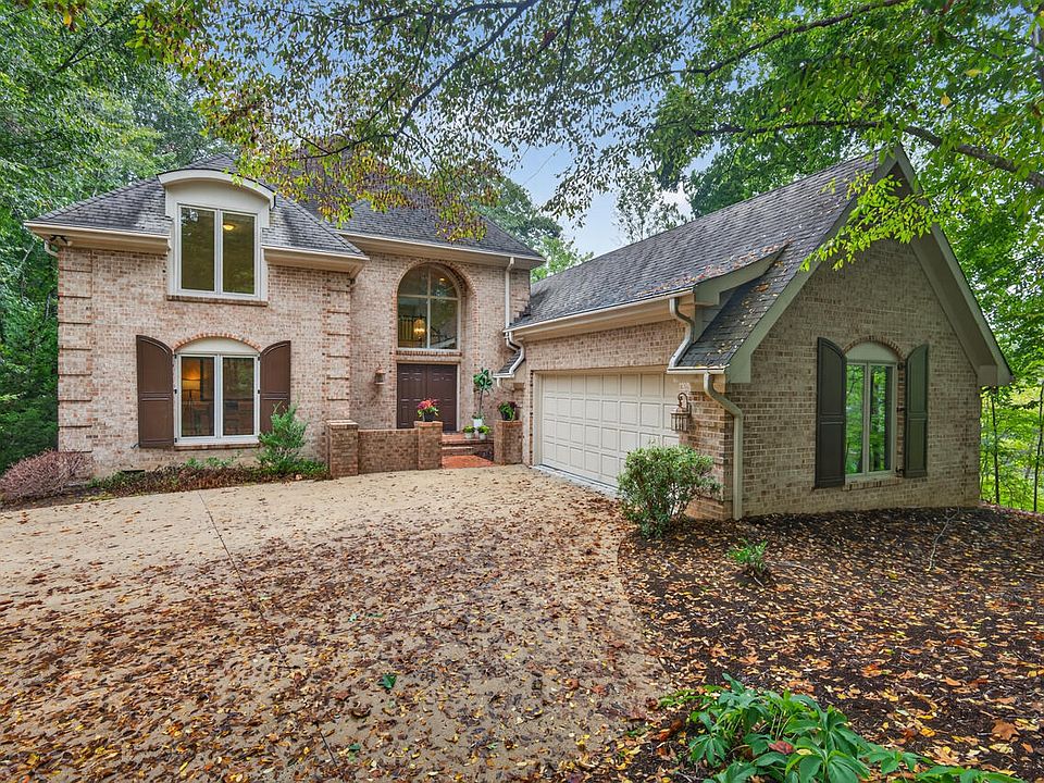PRICE ADJUSTMENT on this beautifully crafted, all-brick Goforth home—a private, dappled retreat nestled in the trees, just minutes from downtown Chapel Hill. Perched in a serene, wooded setting that evokes the feel of a mountain getaway, this home offers the best of both worlds: peaceful natural beauty yet minutes from downtown Chapel Hill. You can also enjoy a morning walk down to Café Driade! The driveway is framed by mature crape myrtles and there is ample parking adjacent to the garage. Inside, the layout is thoughtfully designed for easy main-floor living. The spacious primary suite, dedicated study, sunroom, and laundry are all located on the first floor. A gracious foyer welcomes you with a sweeping staircase that leads to two additional bedrooms and a full bath upstairs, offering privacy for guests or family. The living room is a showstopper, with soaring ceilings and dramatic windows that invite the outdoors in. Anchored by a handsome masonry fireplace and custom built-ins, the space also features a convenient wet bar tucked around the corner. French doors open onto a recently rebuilt deck and is accessible from both the living room and sunroom. The dedicated study, with grass cloth wallpaper, is a quiet and inspiring space—ideal for remote work, a music room, or a media/game room. It includes a walk-in closet with built-in shelving for games, AV equipment, or extra storage. The eat-in kitchen has abundant cabinetry including triple-door pantries, generous counter space, and stainless-steel appliances (all included). The double oven range accommodates everything from a casual meal to a holiday feast. Off the kitchen with entrance from the garage, the laundry/mudroom offers a practical drop zone with a utility sink and additional closets—washer and dryer convey. Out back, the private, deer-fenced yard is a botanical delight with mature azaleas that burst into color each spring. This inviting, well-maintained home offers a rare blend of natural tranquility and town convenience. Come experience the warmth, charm, and effortless livability for yourself!