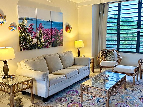 This spacious beachfront unit in this small (18 unit), gated complex is only up a short flight of stairs and affords all the delights of beachfront living! Fabulous views, amazing breezes, great pool, inviting gazebo for picnics and parties, an outdoor shower to rinse off after an ocean swim. The unit has a large living room and beachfront gallery, and the bedroom is large enough for two queen sized beds with room to spare. A separate laundry room affords storage for your beach and pool toys! On site Generator, A little slice of heaven for sure! See documents for more info.