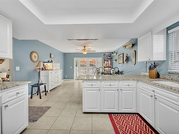Tranquil golf course surroundingsFrench doorsMajestic live oaksQuiet cul-de-sac locationNeutral tile flooringUpdated double-pane windowsFully fenced backyard
