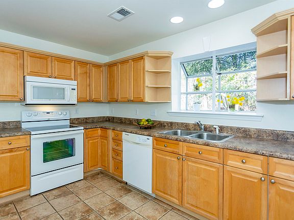 As you drive into the neighborhood, you will realize this premium lot has total privacy on the left side. As you enter the great room, notice the detailed molding, marble fireplace, many windows and hardwood floors. Spacious kitchen offers areas for cooking, entertaining, pantry and laundry. Steps away is a covered patio which is perfect for morning coffee, bird watching and BBQ grilling. Oversized primary bedroom has a detailed ceiling and large window. The bathroom features double vanity, garden tub, separate walk-in shower, toilet area and a large walk-in closet. Second bedroom features cathedral ceiling, round head window and walk-in in closet. This area is steps away from second bathroom. Hall has pulled down steps to a floored attic, coat and linen closet. In the last month, home was completely painted and new carpet installed. Exterior is maintenance free! Don’t hesitate to make your appointment to view this home today!