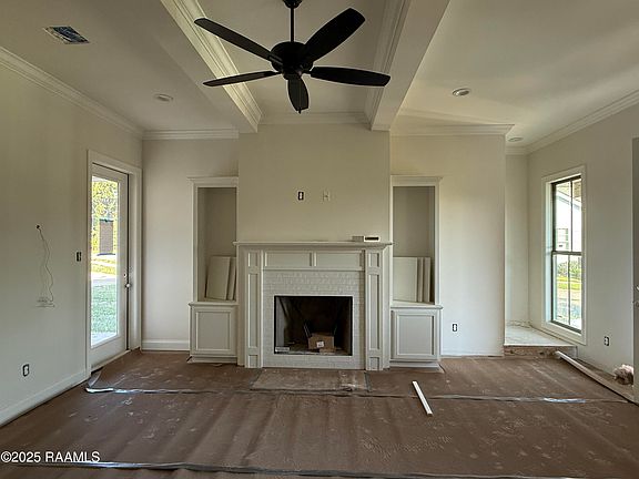 Prime Location on an Oversized Corner Lot in Olde Towne at Millcreek!Conveniently located off Verot School Road near Ambassador Caffery, this community offers easy access to shopping, dining, and top-rated schools.This new construction Energy Star Certified home features the St. John Coastal floorplan, a stunning two-story design with 3 bedrooms and 2.5 bathrooms. The spacious living room highlights a ventless gas fireplace and gypsum beams on the ceiling for added character.The kitchen is thoughtfully designed with a slide-in gas range, stainless steel appliances, granite countertops, pot drawers, an undermount sink, and custom-built cabinets with hardware. Durable vinyl plank and tile flooring extend throughout the home for style and functionality.The primary suite includes a custom-tiled shower with a built-in niche.Exterior highlights include front-yard landscaping, up to 10 pallets of sod, and a privacy fence - all sitting on a desirable corner lot that enhances curb appeal and yard space.