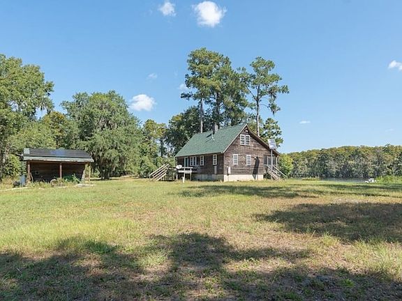 Improvements include a thoughtfully placed residence built in 1998, situated to capture prevailing breezes and designed with a screened porch overlooking the Neuse River and private dock. The interior offers an open layout with rare white juniper finishes, multiple bedrooms, and modern amenities, while a 5 kW solar array, updated lithium batteries, inverter, and a permitted well provide reliable off-grid living. Additional structures include a large shed for equipment and tractor storage, supporting the property's recreational and practical uses.