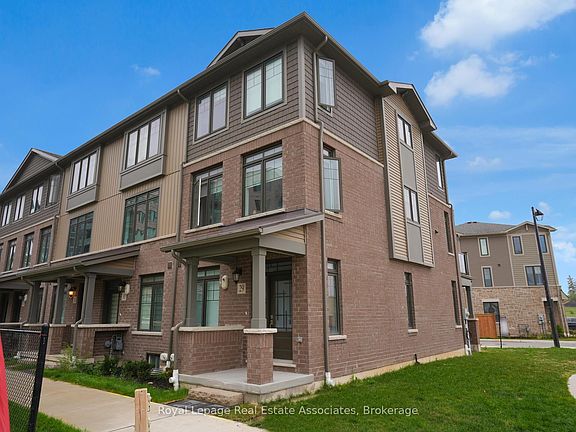 Welcome to 100 Hollywood Court, Unit 29. A beautifully maintained 3-bedroom + den, 3-bathroom end-unit townhome located in the sought-after Hespeler Village community of Cambridge. This bright and spacious home offers a functional open-concept layout with large windows that fill the space with natural light. The modern kitchen features granite countertops, stainless steel appliances, white shaker cabinetry, and ample storage, perfect for cooking and entertaining. Enjoy wide-plank laminate flooring throughout the main living areas, a versatile den ideal for a home office or playroom, and a spacious primary bedroom with a double closet. Convenient upper-level laundry includes a full-size Whirlpool washer and dryer. Additional features include interior garage access, lower-level walkout entry, and driveway parking. Situated just minutes from Highway 401, parks, schools, shopping, and everyday conveniences, this home offers the perfect combination of comfort, location, and style.