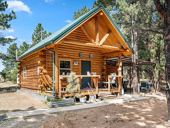 Escape to your own private sanctuary nestled in the serene beauty of Keyhole Reservoir. This rare and unique listing just moments from the pristine water of Keyhole Reservoir, offers the ultimate cabin lifestle. Imagine waking up to the peaceful sounds of nature and watching deer, elk, and turkey cross your property. The main cabin provides a cozy rustic retreat, while a separate, fully equipped guest cabin offers a bed, loft, kitchen area, and bathroom-perfect for visitors, a man cave or the kids own get away. This off-grid property is powered by solar electricity,. giving you independence with out sacrificing comfort. Enjoy breathtaking views of the surrounding trees and the lake from various points on the property. The land if fully fenced, making it ideal f for horses or cattle. This is more than just a cabin: it's a quiet, peaceful, and self-sustaining haven for those who cherish nature and tranquility. If this is what you are looking for call Angie Clark with Lifestyle Real Estate at 307-689-2055 and lets go for a walk around the property.