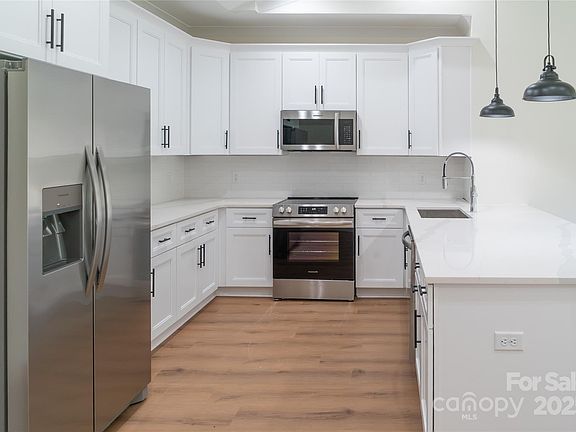 Elegant single-level living awaits in Henry’s Glen. This brand-new townhouse, just minutes from downtown Morganton, offers an open-concept design with a soaring vaulted great room that blends the living, dining, and kitchen areas. A cozy gas fireplace anchors the space, while the chef’s kitchen features custom cabinetry, quartz countertops, and a full suite of appliances.