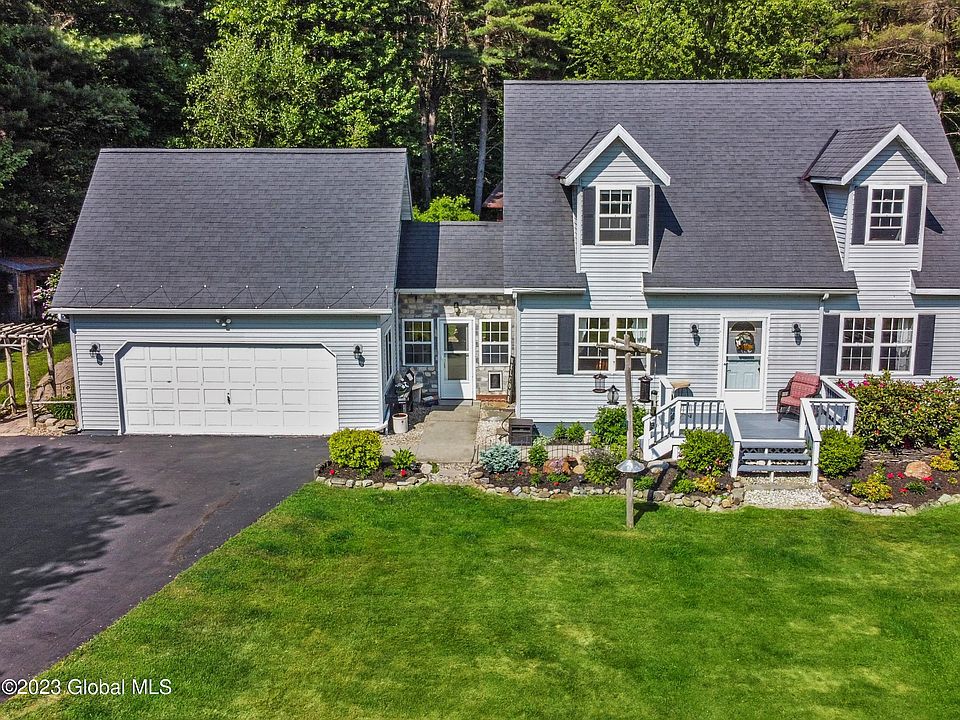 Welcome to this beautifully maintained cape-cod style home in peaceful Galway. This home has a beautifully landscaped yard, with so much to offer the next homeowner. There is a serene, two-tier, man-made pond, a two year old, above ground pool with deck and gazebo and a picturesque stone patio. Enjoy summer nights and peaceful mornings surrounded by nature here in this 12 home development! Inside you will find a farmhouse feel with three spacious bedrooms, two bathrooms and a bonus room in the back! Updates and perks include, all new appliances in the kitchen, a generator, oversized/detached garage with workshop and two additional storage sheds on the property. Schedule your showing today!