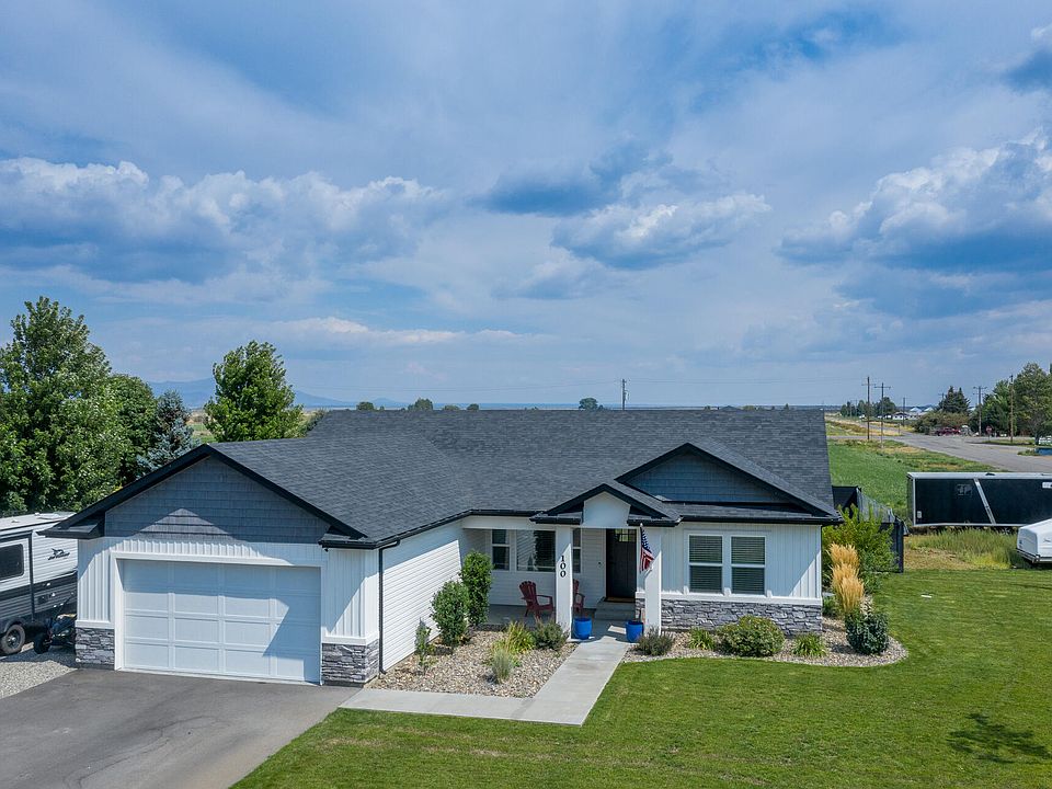 Located at 100 Janice Ln in Carey, this beautifully maintained single-level family home - built in 2022 - is a rare opportunity to own a like new property with breathtaking mountain views. Situated on a .4 acre corner lot, there's ample room to build a shop, garden, or simply enjoy the extra outdoor space. Inside, the home offers 4 beedrooms and 2 bathrooms, blending comfort and modern style throughout. The kitchen is a standout, designed with the culinary enthusiast in mind. It boasts elegant quartzite countertops, shaker cabinets for generous storage, and a large island perfect for gatherings and casual meals.