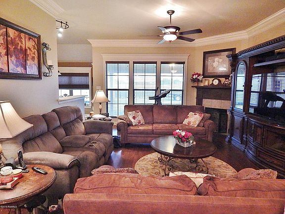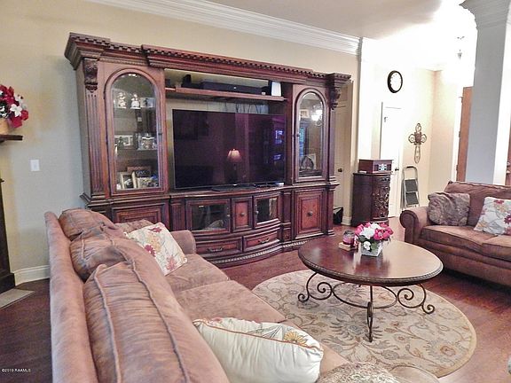 Rayne address..MIRE School!!! 11 minutes to AMBASSADOR CAFFERY! Over 1/2 acre lot! Great homes like this do not come along often! CUSTOM built..ONE owner, this beautiful home is well maintained and offers a popular, traditional split bedroom, open layout! Lots of windows bring light into the living room which includes a gorgeous solid wood ENTERTAINMENT CENTER and gas fireplace! Triple crown molding beautifully accentuate the living and dining areas. Kitchen has ample cabinets and GRANITE countertops, snack bar, and opens to the breakfast room with views to the back yard! The master bedroom suite is LARGE with an EXTENDED space which could be a nice sitting area! The master bath features dual vanities, a walk-in closet, jacuzzi tub and a separate 4 ft shower with built-in seat! Access to the garage is separate, and not through the utility room, which features built-in cabinets! Easily keep clothes hidden away! Out back, you will enjoy sipping your favorite beverage and BBQ-ing with friends and family on the covered back patio with concrete extension. The private fenced-in yard features a DOUBLE-GATE where a boat/RV port could be built! It is quite large and a great space to enjoy playing yard games, and having a large play set! There is a portable storage building and flat bed trailer on the lot which can be purchased SEPARATELY along with the John Deere riding mower! SLEMCO ELECTRICITY! Opportunities like this do not come along often!!