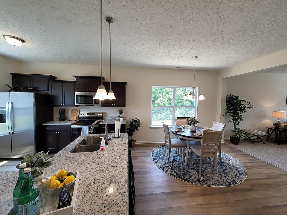 End unitGranite kitchen topStainless steel kitchen appliancesHard floors throughout houseGarden tub