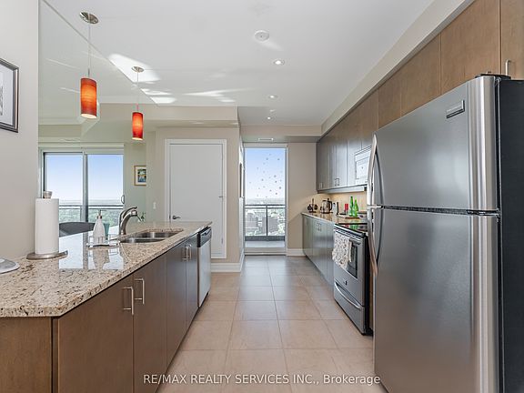 Spectacular views of the sun rise to enjoy your morning beverage and watch the sun setwhile having dinner. These are extraordinary advantages of owning this prestigious ParkPlace condo with upgrades to include an electric fireplace installed on a bricklike feature wall and stone type flooring for the 368 sq ft private terrace that has a gasoutlet for barbecue and wraps around the corner unit of a beautiful 1303 sq ft Suite.There are 2 Bedrooms (Primary bedroom offers walk in closet and 4-piece washroom,)a Den, second 3-piece washroom, laminate floors, stainless steel appliances, ensuitelaundry, bright floor to ceiling windows with South views of green space and West viewsof downtown. Upgraded floor tiles in foyer, kitchen, laundry, and both washrooms.Additional upgrades to kitchen include the backsplash, and installation of Potlights. Included are 2 underground parking spots side by side near car wash bay, astorage locker and a separate wine locker. Walking distance to GO station,transit, banks, restaurants, Gage Park, Rose Theatre, Peel Art Gallery, Museum andArchives, library, public tennis courts and baseball diamond, Brampton TennisClub located in Rosalea Park, the YMCA, William Osler Peel Memorial Centre forIntegrated Health and Wellness, Greenway Retirement Village and Algoma University toname a few. Many walking trails within the green belt/conservation area adjacent to theproperty. There is 24-hour security for the building which includes gym, party room withoutdoor terrace, formal dining room, billiard room, theatre, boardroom, guest suite.incl