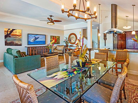Yours to enjoy while living the island life in this newly renovated fully-furnished home, covered backyard lanai with garden, saline pool & jacuzzi. Stunning garden, ocean and sunset views. New limestone flooring, plantation shutters/window coverings, interior paint, wall art, LR sofa & hassock, Koa wood wall table, designer framed 65" Samsung Neo QLED TV, washer/dryer, dishwasher, central A/C, soft water and outdoor lanai fan. Primary bedroom offers balcony with spectacular garden, ocean and sunsets views, hand-made king-size "Savoir" mattress, his/hers sinks/vanity, his/hers closets, jacuzzi bath, enclosed shower. Second Bedroom offers cherry wood king-size "Baker" bed, double door closet, separate private bath/shower. Kitchen fully-equipped with granite counters, new lime stone flooring, new Sub-zero refrigerator, new Kitchen Aid dishwasher and new GE cooktop, garbage disposal, oven and microwave. Office furnished with new desk and new ergonomic chair. Private garden backyard, furnished & covered lanai, heated saline pool/jacuzzi, travertine tile, new outdoor wall art, new hand-carved wooden bench, new Weber BBQ and new ceiling fan.