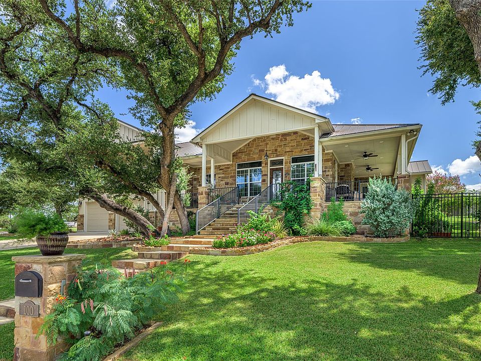 This custom-built home sits on a tree-shaded lot in The View, an exclusive gated community overlooking La Grange and the Colorado River Valley, near Monument Hill State Park. The 3-bedroom, 3.5-bath home features a stone and hardy plank exterior, standing-seam metal roof, two-car garage, and a landscaped yard with a sprinkler system.