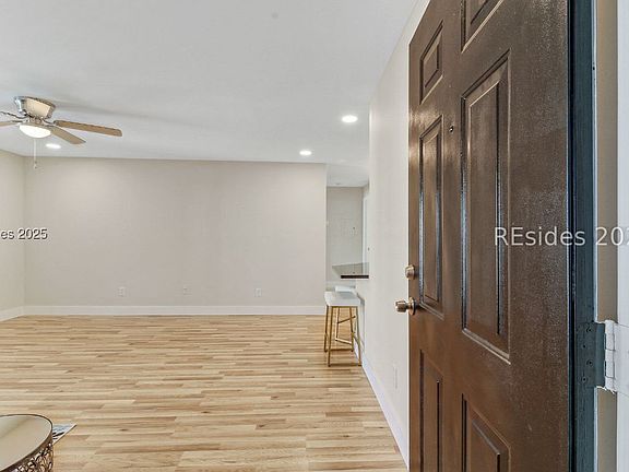 Welcome to this beautifully updated second-floor villa, offering serene views of the lagoon & fountain from your private balcony. Inside, luxury vinyl plank flooring flows seamlessly through the living areas, complementing the upgraded kitchen featuring crisp white cabinetry, stainless steel appliances, and a granite counter-height island - perfect for entertaining. The bathroom boasts a walk-in tiled shower, modern vanity w/mirror and elegant tile flooring. Enjoy the comfort of smooth ceilings, updated ceiling fans, and contemporary light fixtures throughout. Ideally located near Bluffton schools, dining, and shopping, with easy access to Hilton Head Island and Savannah, this villa combines convenience with coastal charm.