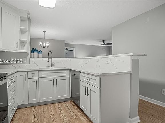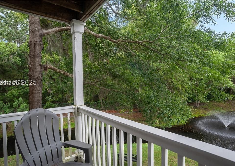 Fantastic two bedroom, two bath condo in The Estate of Westbury, in Bluffton. This beautifully updated condos kitchen has stainless steel appliances, quartz countertops, laundry room with washer and dryer, LVP flooring throughout. Move-in Ready. This second floor balcony and bedroom have a serene view of the pond and wooded area. Condo is an end unit next to an open area with woods and a pond. Community pool, fitness center and security gate