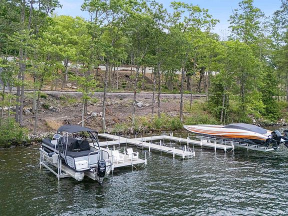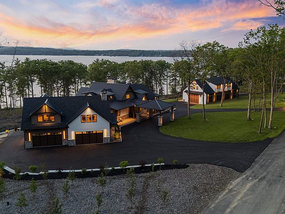 This one-of-a-kind luxury estate offers panoramic views of Lake Winnisquam and the mountains, with stunning sunrises and sunsets. A seasonal three-finger composite dock provides ample slips for all your lake toys. The main home has 4-bed, 7-bath including an attached 4-car heated garage with epoxy floors. Each bedroom has an en-suite with radiant floors and walk-in closets. The spa-like primary suite boasts a steam shower, heated benches, dual water closets, and a spacious walk-in closet. The open-concept chef’s kitchen features Thermador appliances, quartzite countertops, an ice maker, butler’s pantry, and custom cabinetry. A serene office offers built-ins and private entrance. Hardwood floors run through the main level and expansive upstairs game room. Smart home features include four gas fireplaces, coffered ceilings, surround sound, and dual laundry rooms. The lower level offers a kitchenette, living room, wine room with wet bar, theater, gym area, and radiant-heated concrete floors. Outside, enjoy impact-resistant windows/doors, patios, decks, fire pit, full outdoor kitchen with 65” TV, 8-person spa, apple orchard, raised garden, smart lighting/sound, and security system. A heated 6,008 sq ft (82x42) barn includes a guest suite with kitchenette, laundry, multiple baths, and vast space for storage or entertaining. Too many features to list—this is a must-see property!