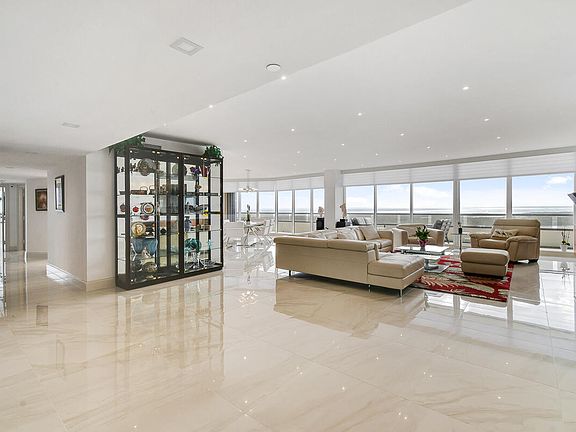 Stunning Luxury Residence Once in a lifetime opportunity to own a breathtaking, architecturally designed and completely reimagined residence in the prestigious 100 Lakeshore Tower. This exquisite 3-bedroom, 3.5-bathroom 18th floor high rise condominium home offers an unparalleled combination of elegance, and modern sophistication.Step inside to discover porcelain flooring throughout, setting the stage for a sleek and timeless aesthetic. The gourmet kitchen is a chef's dream, featuring top-of-the-line Thermador appliances, granite and onyx countertops, and custom cabinetry perfect for culinary enthusiasts and entertainers alike.Designed to maximize comfort and style, the fully open-concept living and design. Don't miss your chance to experience the ultimate waterfront lifestyle. 18th Floor Unit with ceiling glass provides incredible Views of the Atlantic Ocean Inland Waterway Lagoon and Harbor. Features Include: New Thermador Refrigerator, Electric Stovetop, Oven, Microwave, Dishwasher, Wine Cooler, Electrolux Washer and Dryer. New LED Lighting Fixtures throughout. Two New 75" Samsung wall-mount TVs Plus 47" and 45" wall-mounted TVs. New Aluminum Hurricane Shutters. Fully Motorized Hunter Douglas Window Blinds throughout. Air Conditioned Garage Storage Unit and Two Garage Parking Spots. This Castle in the sky is truly one of a kind.