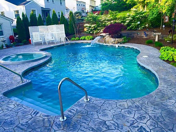Built in Pool with Stamped concrete patio around it and waterfall (Installed 2010)