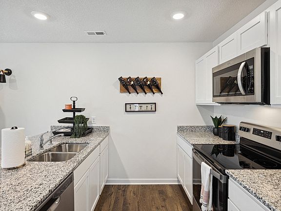 - Exterior features: Barbecue, Beautiful Shaker-Style Cabinetry, Brushed Nickel Hardware, Contemporary Open Floor Plans, Cultured Marble Counters in Bathrooms, Fire Pit with Adirondack Chairs, Fully Sodded Landscaped Yards Where Cleared, Gazebo, Hose Bibs Per Home, LED Lighting, Large Lot, Overflow Parking, Parking, Pet Park, Privacy Fence, Professionally Landscaped Lawncare, Skybell Video Doorbell, Stainless Steel Appliances, Undermount Stainless Steel Sink, Wood Inspired Flooring