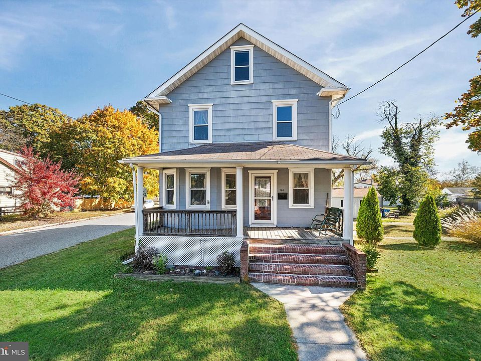 Discover the timeless charm of 100 Locust Avenue, a 3-bedroom, 1.5-bath home perfectly situated on a spacious corner lot. Step through the inviting front door into a spacious foyer accented by elegant wooden moulding and trim—a graceful introduction to the home’s classic character. Just off the foyer, the formal living room opens to a versatile family room (ideal as a playroom or home office) and connects effortlessly to the dining room for easy entertaining. The formal dining room flaunts hardwood floors, chair rail, a ceiling fan and leads directly to the kitchen. The updated kitchen comes complete with granite countertops, gas cooking, and a tile backsplash. A door from the kitchen leads to the sizable back yard. Upstairs, you’ll find three comfortable bedrooms, including a primary suite with dual closets and a sitting room that opens to a private balcony. The hall bathroom features granite countertops, adding a touch of modern elegance, while convenient second-floor laundry brings ease to everyday living. The home also features an unfinished basement and floored attic ideal for storage, a detached one-car garage and thoughtful original details such as preserved door hardware that highlight its historic charm. Outdoor living is equally inviting with a spacious front porch, a cozy side porch, and an oversized driveway providing plenty of parking. Don’t miss your chance to make this delightful property your new home. Schedule a showing today and experience its warmth and character for yourself!