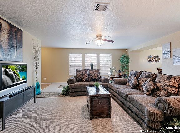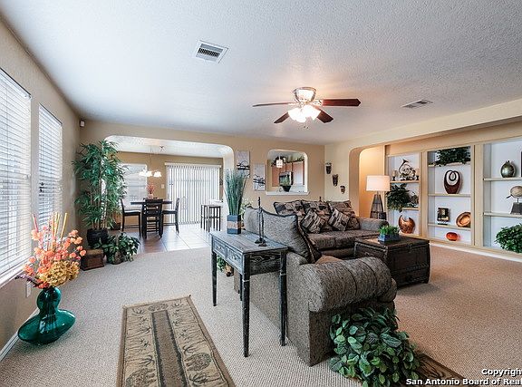 Be First! This fabulous 4BR one story hm is located in Cibolo Valley Ranch on a corner lot.Custom features include art niches,beautiful dbl vanity in the master suite,spacious walk-in closet,new carpet,paint,nickle fixtures & a wonderful open kitchen w/center island & new stainless steel appliances.Relaxing backyard w/new exterior paint,sprinkler system & established yard.Enjoy the convenient location near Steele High School w/easy access to Randolph AFB,I-35,shipping,restaurants & golf.Move in ready!!