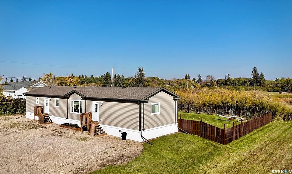 If you’ve been searching for a home that blends convenience, space, and style — this one checks all the boxes! Ideally located on the southeast edge of Stockholm, 100 Macdonald Street offers the perfect balance of peaceful prairie views and small-town connection. Watch the sunrise with your morning coffee and catch those cotton-candy sunsets from your picture window in the evening — it doesn’t get more Saskatchewan than this. This modern modular home features 3 spacious bedrooms and 2 full bathrooms, designed with everyday comfort in mind. Vaulted ceilings, large windows, and a show-stopping kitchen straight from a magazine make the main living area the heart of the home. The thoughtful split floor plan provides privacy with the primary suite on one end — complete with a walk-in closet and oversized 4-piece ensuite — and the kids’ or guest rooms tucked neatly on the other. Storage is abundant, and every room feels open and inviting. Outside, you’ll love the space and privacy of the fenced backyard, where no neighbors are in sight. The large deck is perfect for barbecues and summer evenings, while the newly built double garage offers extra parking and workshop potential. With the school just down the street and quick access to trails for ATVs or snowmobiles, this property truly gives you the best of small-town living. Homes like this don’t come along often — book your personal tour today!