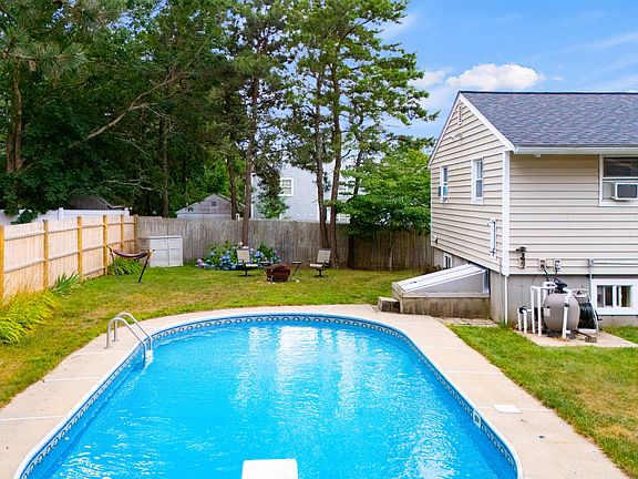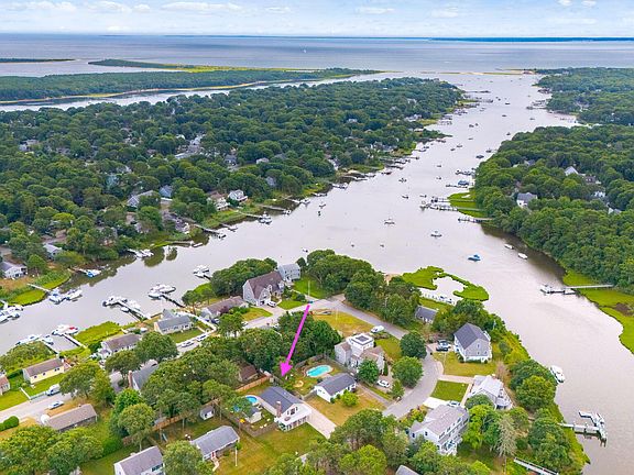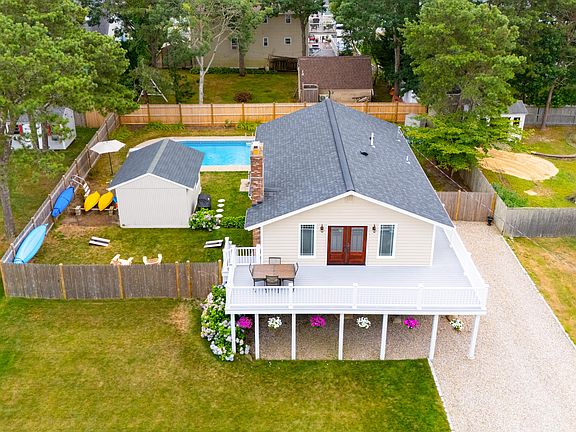 Welcome to Bluewater Shores! Just minutes from Mashpee Commons and charming downtown Falmouth. Let this sweet three bedroom, two bathroom home be your summer escape or full-time Falmouth home! Located steps away from the association boat launch/landing, enjoy your favorite outdoor activities, such as paddle boarding or kayaking to Washburn Island or launching your boat with access to the Atlantic Ocean. The backyard is your private oasis and is great for entertaining around your large, in-ground pool with diving board. This home has been fully renovated including: new kitchen, appliances, bathrooms, flooring, fencing, interior and exterior doors, some windows, siding, roof, high efficiency heating system, sprinkler system, driveway, huge deck with enclosure under, etc. The home has peekaboo water views, enjoys gorgeous sunsets, is steps form the association water access and is just a short drive to public beaches. Will not last!