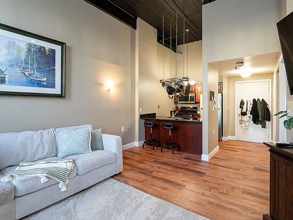 Versatile loft areaStainless appliancesThoughtful modern finishesSpacious bedroomGenerous walk-in closetDramatic vaulted ceilingsIconic mill architecture