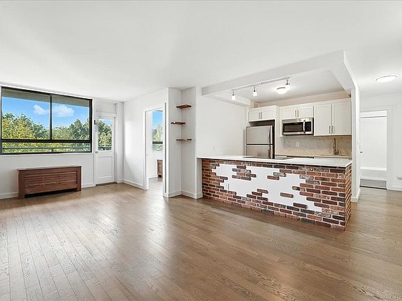 One-bedroom w/Den! Bright, Modern, and Move-In Ready with Iconic Views. The beautifully renovated 780 sq ft is the perfect home. Pride of ownership can be seen throughout with thoughtful upgrades including custom designed walls, newer hardwood flooring, sleek kitchen cabinetry with quartz countertops, and newer stainless steel appliances. The spa-inspired bathroom is fully tiled for a clean, contemporary feel. The living room is sizable and came be split into living and dining along with plenty of large cosets offered in every room. The home features your own private balcony to soak in breathtaking NYC skyline views and vibrant sunsets—a daily luxury that doesn’t get old.