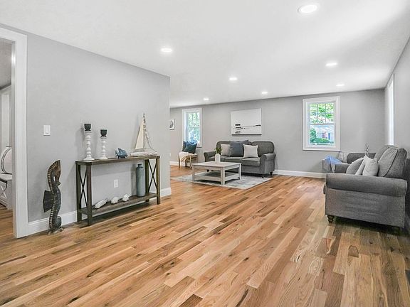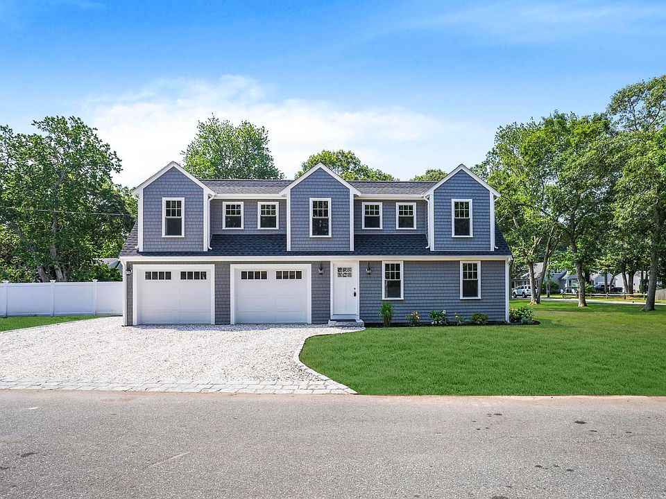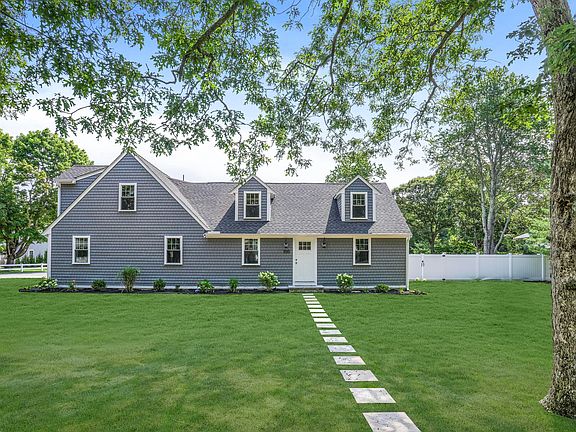 Introducing a spectacular 4 bdrm, 2.5 bath oversized Cape. With just over 2,800 sq' of living space plus a 2 car garage, Located just .2 miles from Great Pond where there is a shoreline beach area great for kayaking and 1.3 miles from the beautiful Falmouth beaches. This home features all New electrical, plumbing, heating & Central AC systems, tankless hot water unit, roof, windows & doors, and maintenance free Cedar impression siding. The inside is tastefully designed with an open floor plan and Gorgeous Hardwood floors. New kitchen, Quartz countertops & appliances, New Baths with stylish ceramic Tile floors & fixtures and a 1st floor laundry room. The exterior provides an oversized double lot with a private fenced in back yard, large paver patio, custom natural Gas Fire pit, outdoor Shower, and irrigation. This Large yard is perfect for entertaining, as well as providing a convenient location for touring the town. Call for your private showing today!