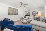 - Built-in Features, Ceiling Fan(s), Crown Molding, Eating Space In Kitchen, Open Floorplan, Primary Bedroom Main Floor, Split Bedroom, Stone Counters, Thermostat, Walk-In Closet(s)