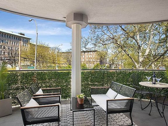 New to the market, a LUXURY HUGE 2bed/2bath NorthEastern facing CORNER VERY SUNNY unit with incredible views of Cooper park! The interior is an estimated 1013 Sq ft & has an exterior 175 Sq ft corner balcony right off of the living area! This is the one of largest 2 bedrooms in this entire building (C line) & the only unit on the 2nd floor that comes with a private outdoor balcony! Bonus features: Not just 1 but 2 onsite indoor garage parking spots available for sale at only $50k each! Owners just painted entire unit and installed brand new grey herringbone floors! Furniture is also available for purchase- kindly inquire for a complete pricing list. Listing agent lives inside building so scheduling a viewing is so easy! Olive Park's high-end amenities include a heated, indoor saltwater swimming pool, luxury spa with a Jacuzzi, cedar sauna & state of art fitness center and more! This unit stands out in the building with a spacious kitchen with island, perfect for cooking and entertaining, as well a large primary bedroom serving as a tranquil sanctuary that comfortably fits a luxurious king-sized bed. The secondary bedroom can fit a queen or full sized bed and/or can be used as a home office. This unit is across the street from the newly renovated Cooper Park, with leisure activities that include a dog run, jogging track, children's playground, adult exercise stations, tennis, and volleyball & basketball courts. Cooper Park also offers the opportunity to just relax and picnic on the expansive lawn during a sunny day, or join yoga and activity classes hosted by local groups. Interior features: California windows, wood floors, marble bathrooms & kitchen, rainforest shower head & huge soak in tub, dishwasher, microwave & video intercom that includes a security alarm & washer/dryer hook up installed in one of the entry closets. Exterior features: 24 hour doorman security & concierge with package room & cold storage, indoor heated swimming pool, spa, Jacuzzi, sauna, state of the line gym, common area laundry room, welcoming guest reception area that includes comfy couches & fireplace, private large storage unit in the basement that measures 32W x 45D x 89H, recreational room that you can privately reserve to host gatherings in, common roof top area with Manhattan Skyline views & a relaxing mediation garden with bbq. To top it off this building has a pet spa so dogs and cats are welcome! Neighborhood: Beyond the amenities available within Olive Park, enjoy the great dining and entertainment options of Williamsburg, as well as nearby Greenpoint and Bushwick. For commuting, the L train is 2 blocks away on Graham Ave, or take the G train, which is a short 10-minute walk to the Lorimer Street station. The J, M, Z trains are a short 10-minute bus ride away. You are close to award-winning restaurants, bars, cafes, bakeries, bars & grocery stores. Current monthly fees: Maintenance includes a private storage unit, all amenities (parking spot $100 a month per car & bike storage $10 a month))& In unit heat, gas & hot water! RE taxes are only $43 a month (tax abatement expires 7/2034). All open houses are by appointment only. Video tour coming soon!