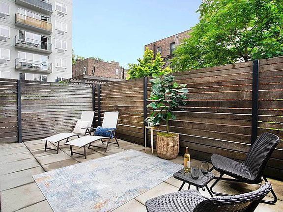 Generously sized one bedroom in one of Williamsburg's best full-service luxury condo buildings. Enter into the generous open kitchen, complete with stainless steel appliances, plentiful counter space, and two large closets. Rare SUNNY SOUTHERN exposure 1 bedroom with a HUGE 300 Sq foot PRIVATE BACKYARD!! The bedroom fits a queen-sized bed and has a large double door closet. Relax in the large soaking tub in the modern bathroom. Additional features include large windows, central air and high ceilings that create an open and airy feel throughout the home. *BONUS: Washer and Dryer INSIDE THE UNIT! Heat, gas, and hot water are included and private large storage unit in the basement Olive Park is one of East Williamsburg's best luxury condominiums. A welcoming guest reception area that includes comfy couches & fireplace, this resort style building is packed with amenities including: health and fitness center, yoga studio, sauna, jacuzzi, heated indoor natural salt water swimming pool with cabana lounge, billiard lounge, communal sundeck, common rooftop cabana with Manhattan Skyline views and a relaxing meditation garden with reflecting pool and barbeque. Neighborhood features: Ideally located across the street from Cooper Park, complete with tennis courts and a skatepark. The L train is a quick 3 blocks to Graham Ave station or take the G train from the Lorimer Street station, short 10 minute bus ride to the J, M & Z trains and close to award winning restaurants, breweries, coffee/bakery shops and grocery stores. For you music lovers Brooklyn Steel is only a few blocks away.